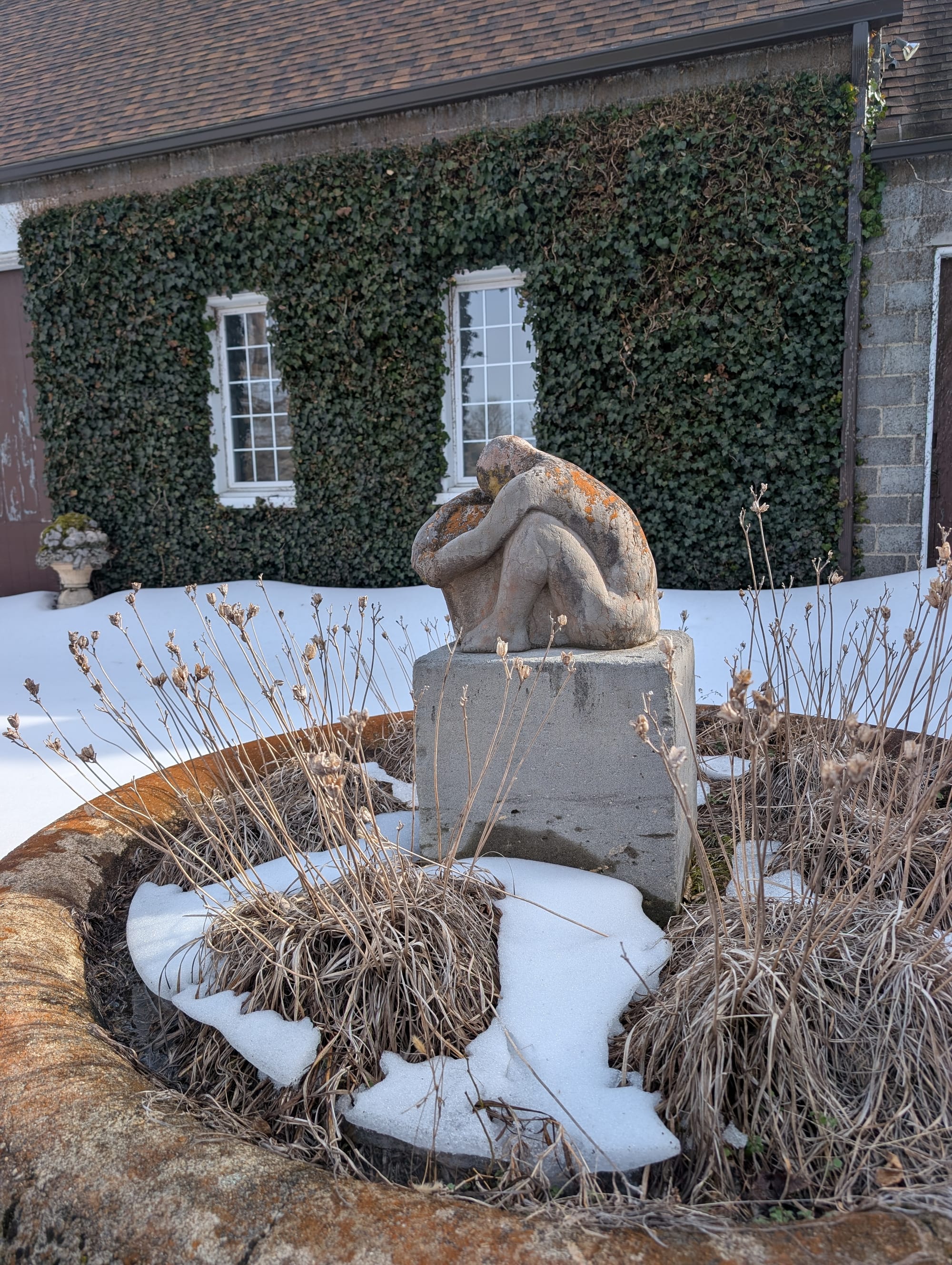 It's raining today. All week the snow has been melting, the temperature broke sixty. Where the bright snow persists, it indicates shade, its opposite.